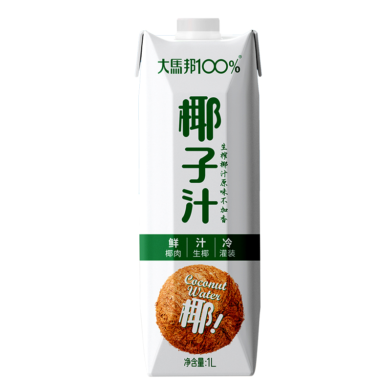 大馬邦100%椰子汁生榨鮮椰漿果肉植物蛋白水果汁飲料歡樂大瓶裝1L